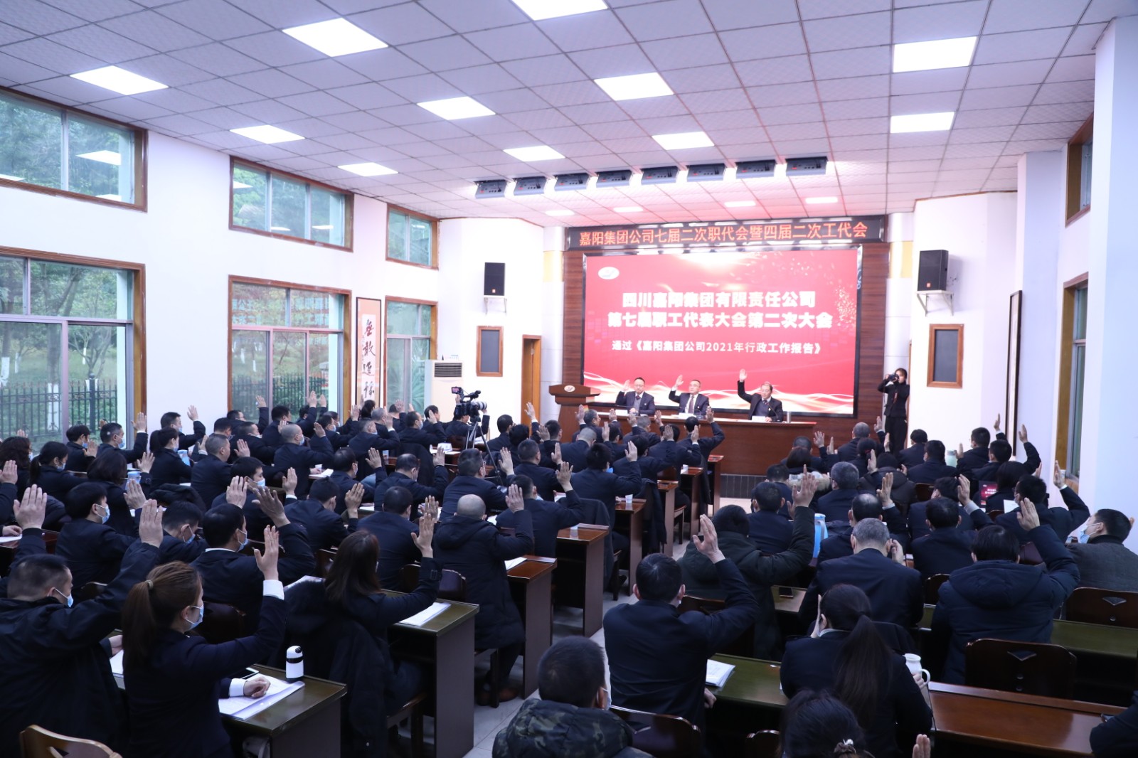 20日上午8点30分,在激情澎湃的国歌声中,环球(中国)七届二次职代会暨四届二次工代会拉开帷幕。大会听取了总经理范勤英所作题为《以科技破困局 靠技术谋出路 开创企业发展新局面》的行政工作报告。报告全面回顾了公司2021年的目标完成情况及主要工作:在川投集团和公司党委的坚强领导下,经营班子带领全体职工踔厉奋发,笃行不怠,抢抓市场机遇,深化内部改革,践行社会责任,克服了诸多困难和挑战,矿井智能化建设取得了突破性进展,安全生产平稳运行,经营效果良好,生产煤炭115万吨,完成掘进进尺8436米,营业收入首次突破5亿元达5.3亿元,全面完成川投集团下达的各项目标任务。报告明确了2022年的目标任务和工作思路。报告强调要坚守安全底线,做好环保工作,抓好疫情防控;要坚持科技进步,树立产业标杆;要保持战略定力,巩固主业优势,培育发展动能;要持续深化改革,确保国企改革三年行动圆满收官;要为职工进一步提供发展空间,健全选人用人机制;着力“我为群众办实事”,与职工共享发展成果。