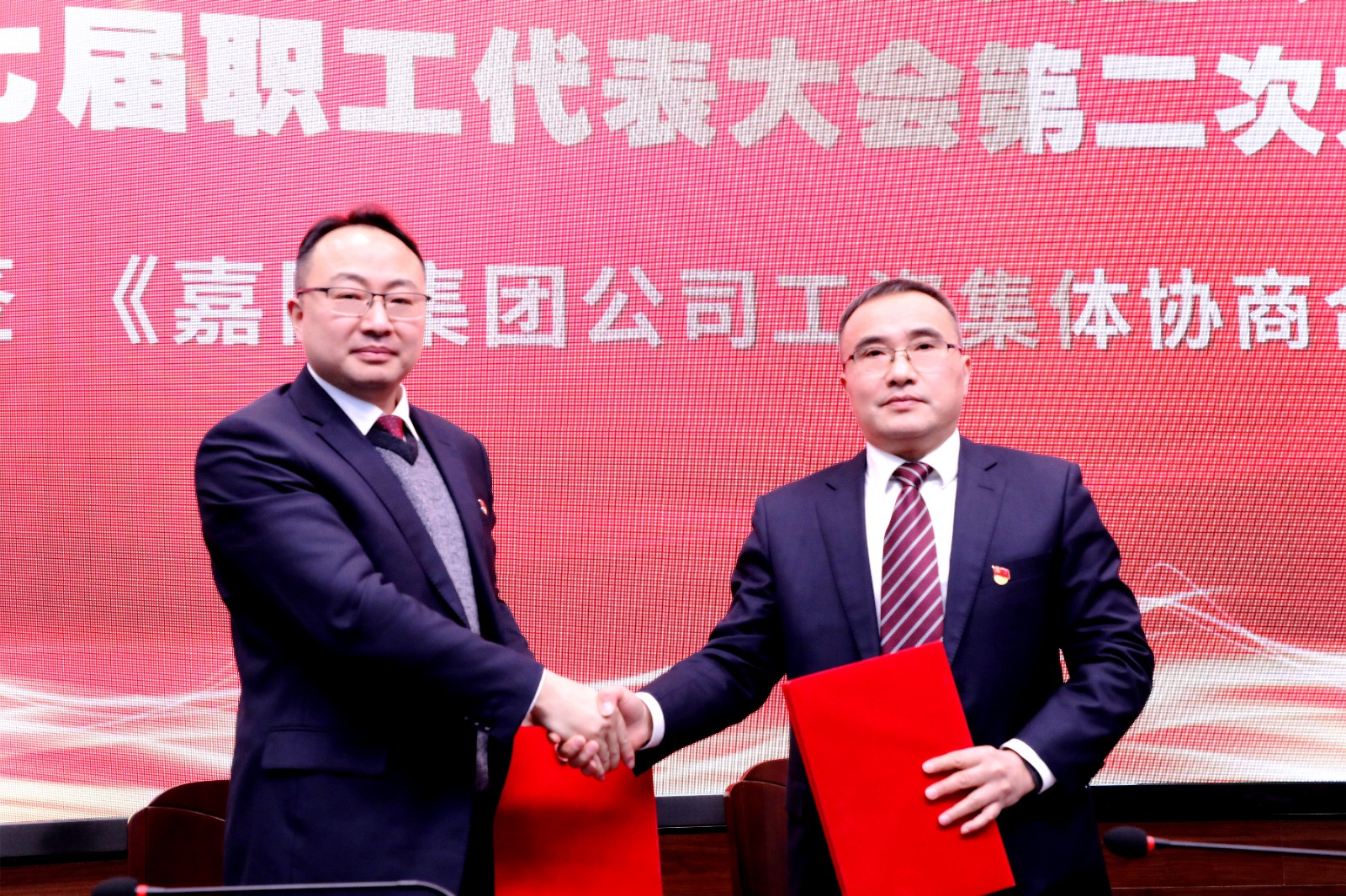 2022年1月20日—21日,环球(中国)七届二次职工代表大会暨四届二次工会会员代表大会在办公楼底楼会议室隆重召开,大会审议、通过了2021年行政工作报告、2021年工会工作报告以及相关办法、计划事项,签订了《环球(中国)公司工资集体协商合同》,形成了大会决议,党委书记、董事长杜勤作了讲话。116名代表肩负重托,齐聚一堂,共商企业改革大计,擘画企业发展蓝图。