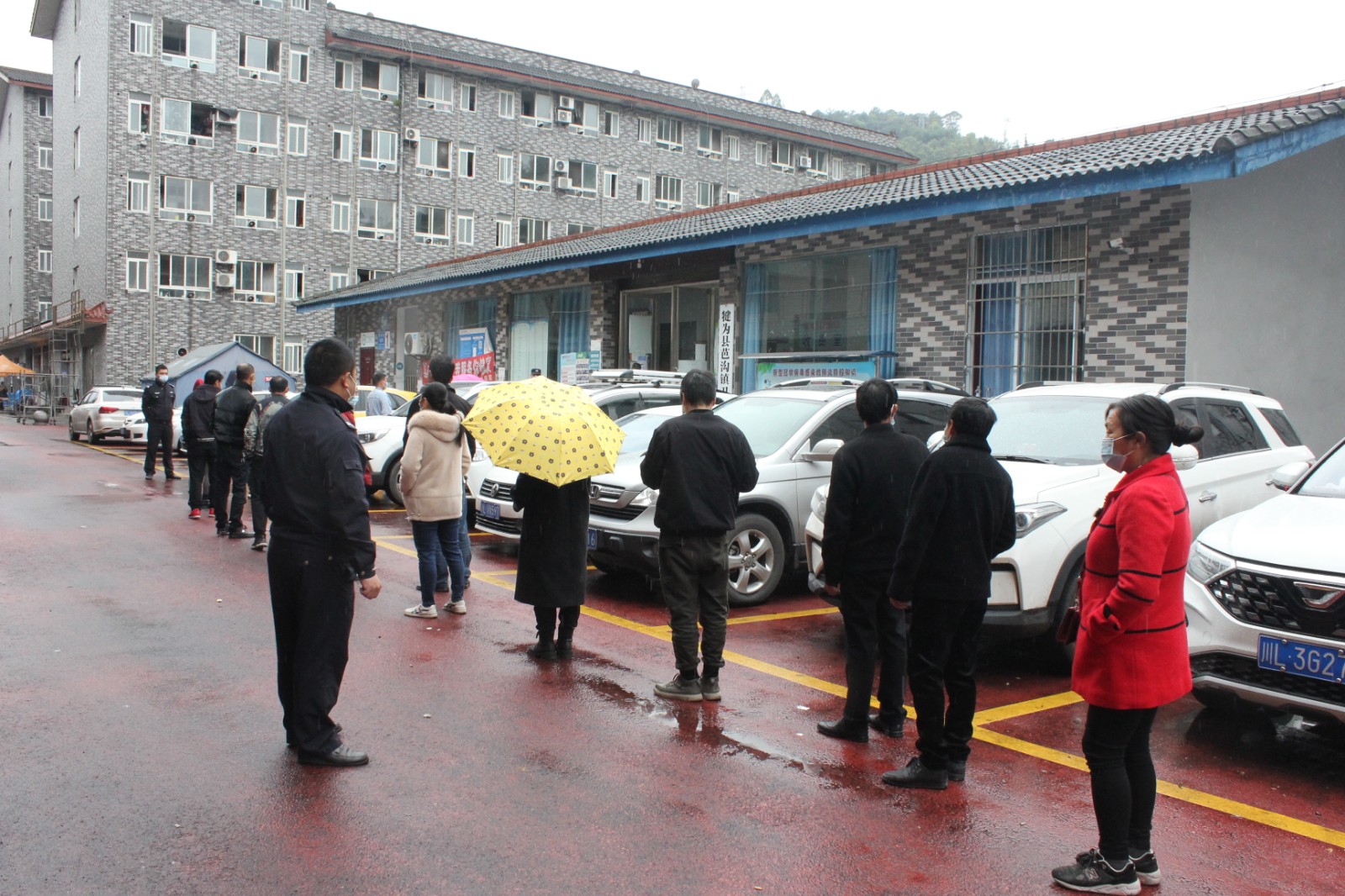 “核酸检测试剂充足,大家都能做,请保持安全距离,排好队依次进入卫生院接受检测”,在环球(中国)保卫部楼下,等候检测的队伍从芭沟镇卫生院门口一直排到队站办公室,保卫部副部长蔡兴明,干警王博一边维持秩序,一边对职工群众进行防疫宣传“上下午都会做,大家不要着急”。