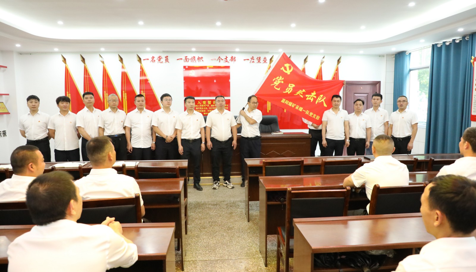 “你们是不畏艰险的生力军……”6月15日,嘉阳煤矿采煤一队党支部在党群活动室举行“党员突击队”授旗仪式,深入推进主题教育走深走实,公司党委书记、董事长杜勤授予党支部“党员突击队”旗帜,为党员干部添信心、鼓干劲,号召全体党员强化示范引领,团结职工再建新功。